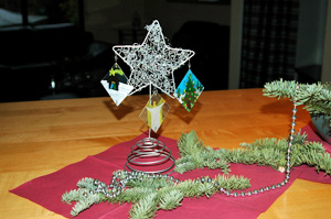wir einen silberfarbigen Weihnachtsstern und bestücken ihn mit Glasbildern aus der Weihnachtsserie.