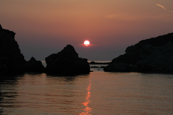 ... ein einsamer Tisch, gedeckt für Zwei für ein romantisches Abedessen in Gümüslük ...