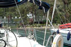 Man legt direkt vor dem Hotel mit Buganker und Heckleine an.