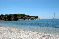 Die Ankerbucht: "St. Nikolo" ist eine sehr schöne kleine Bucht. Leider gibt es oft Probleme beim Ankern. Das Seegras wächst ziemlich weit bis zur Küste und dann wird die Wassertiefe zu knapp.