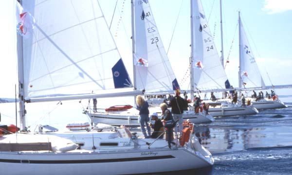 Bei der Überfahrt formierten wir alle Yachten nebeneinander in einer Reihe und steuerten unseren Heimathafen an.