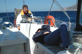 Ab Santorin war der Wind weg und alle freuten sich auf einen herrlichen, sonnigen, warmen Segelurlaub.